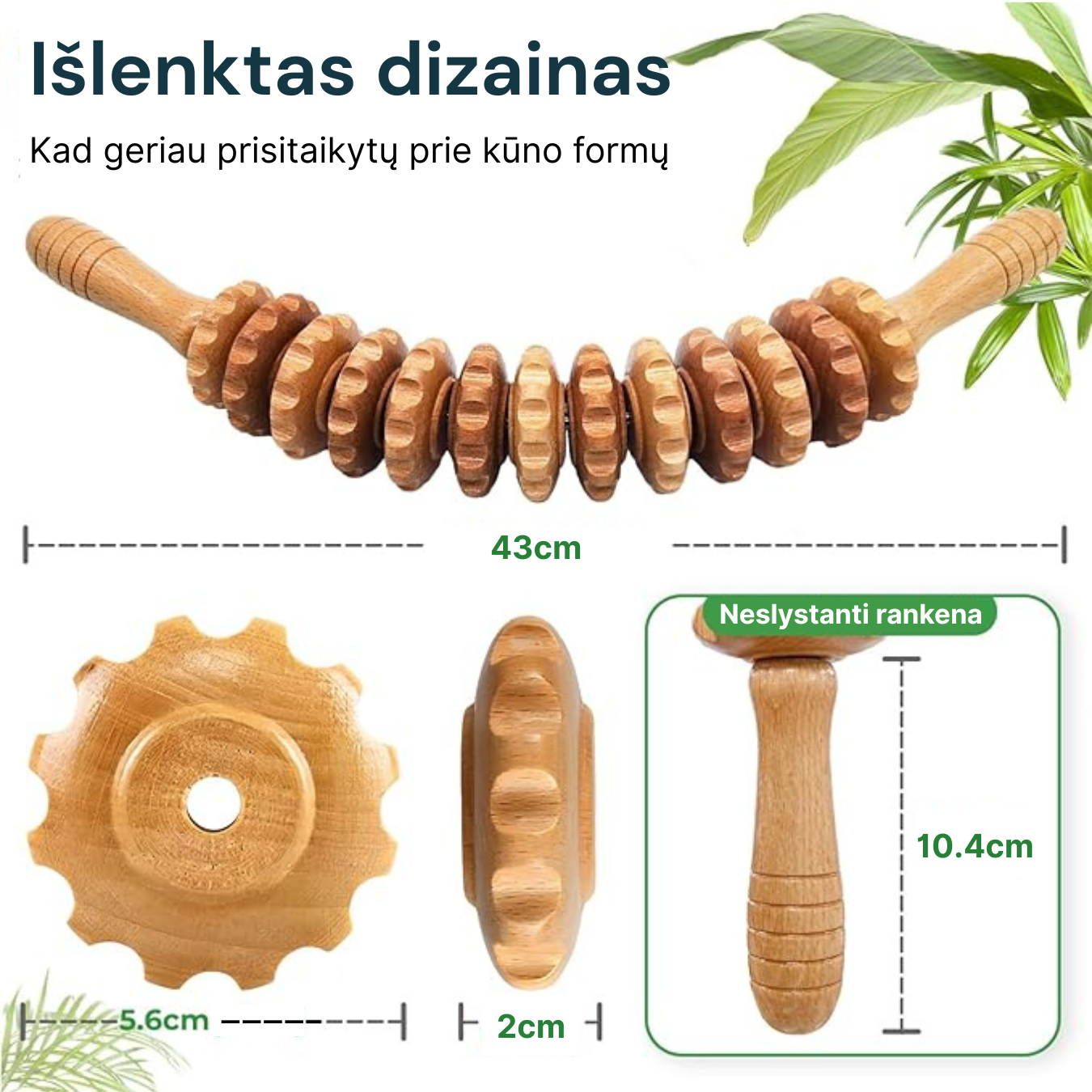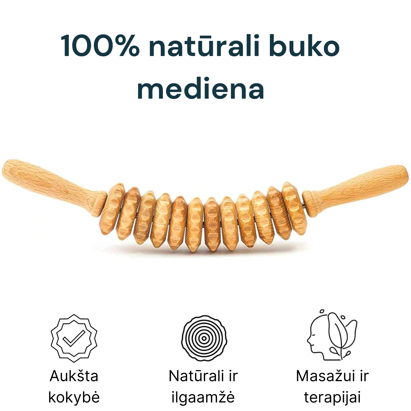 Celiulitui ir kūno stangrinimui padedantis medinis masažinis volelis